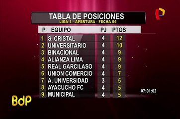 Liga 1 Asi Quedo La Tabla De Posiciones De La Fecha 4 Del Torneo Apertura Video Dailymotion